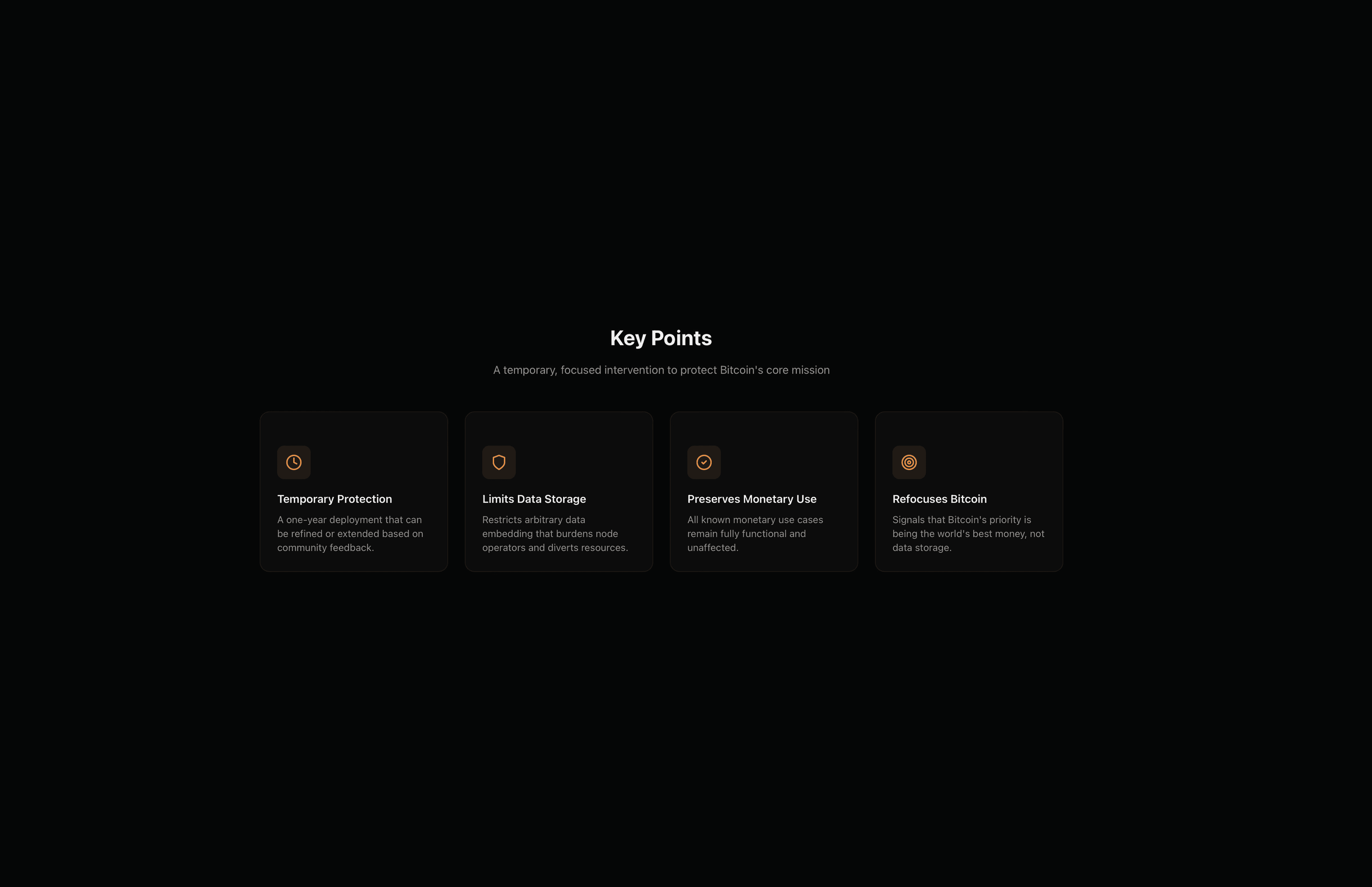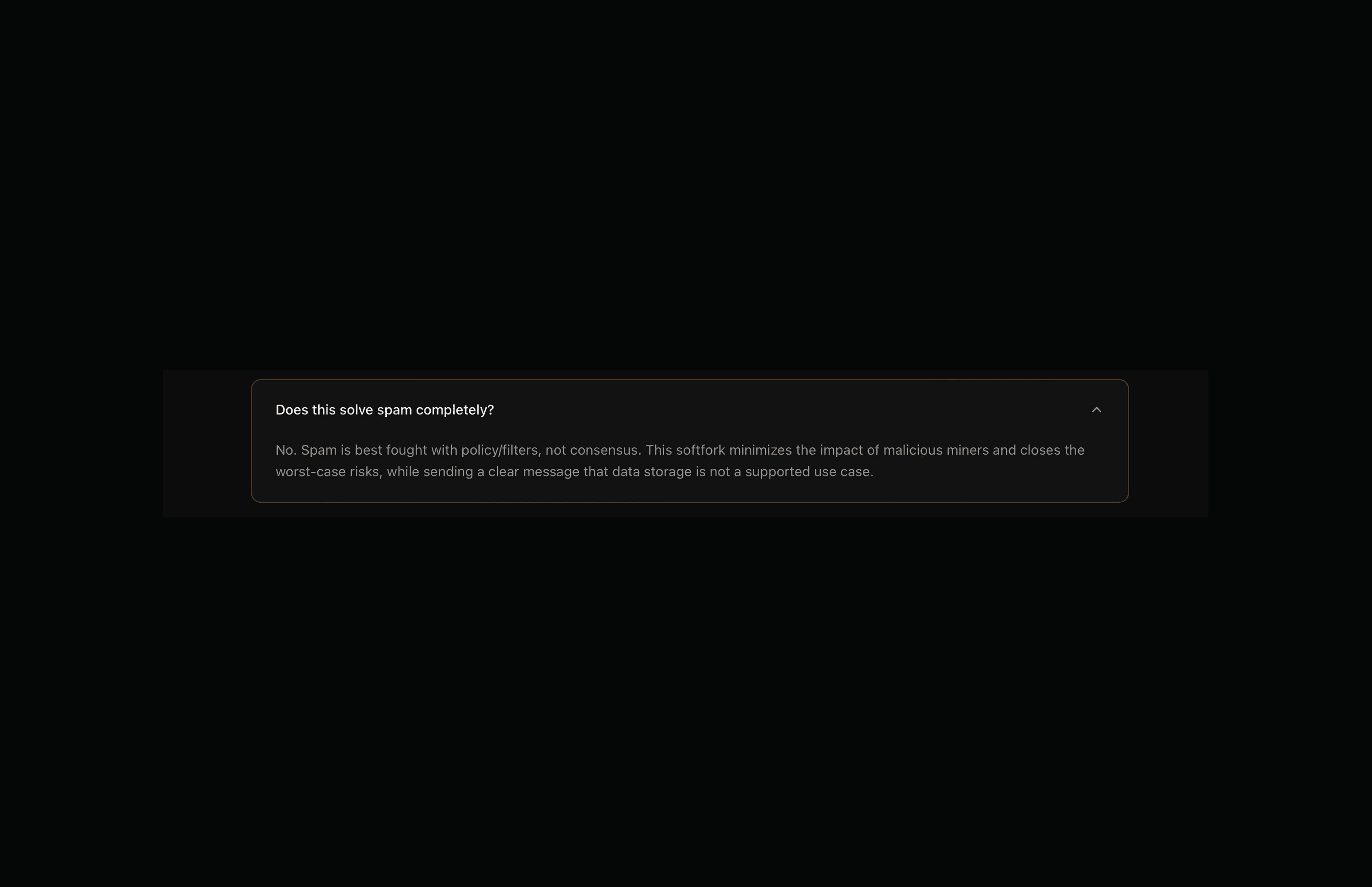 If Bitcoin truly faces an existential spam problem, the solution should be permanent and defended on those grounds. If the problem does not rise to that level, a temporary consensus change introduces more instability than it resolves. Bitcoin's base layer was never designed for provisional rule-making.