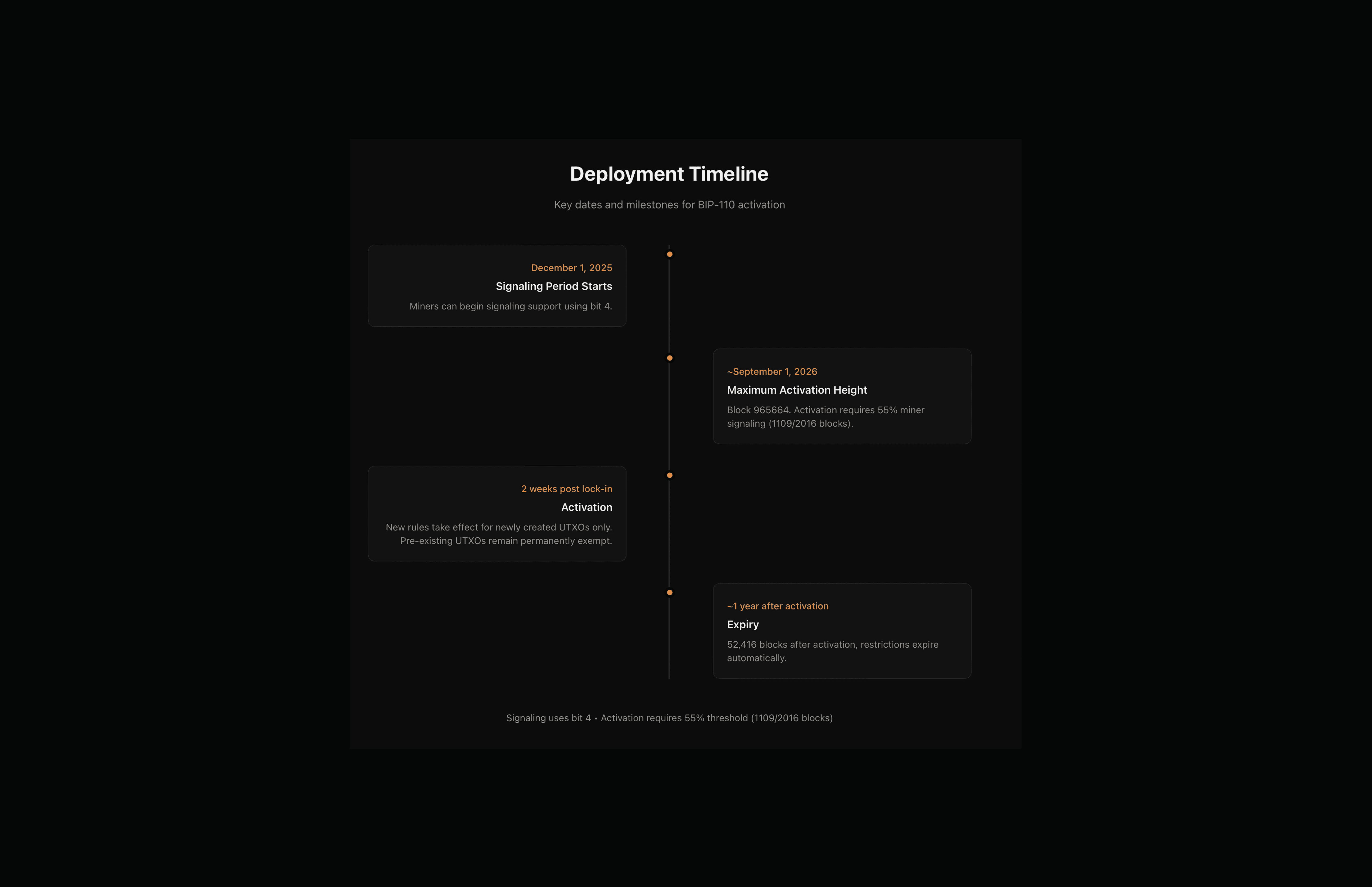 The deeper risk is the precedent itself. Bitcoin has never deployed a time-boxed consensus rule designed to expire automatically. Every soft fork in its history has been permanent. In 2010, Satoshi disabled OP_CAT; fifteen years later, proposals to reactivate it remain contentious. Protocol decisions, once made, tend to persist. That durability is part of what makes Bitcoin's rule set a foundation of trust.