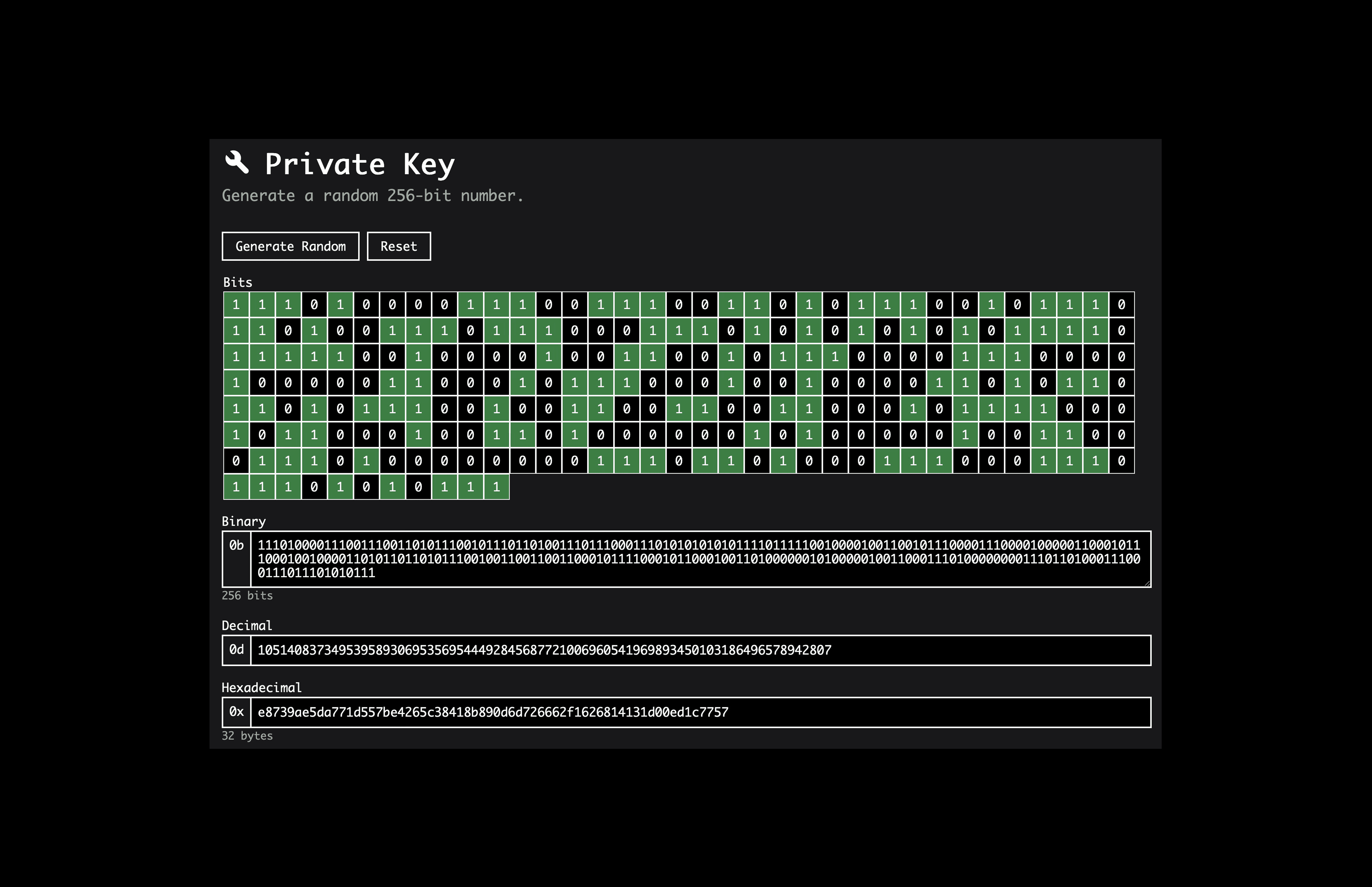 The range of possible private keys is so vast that it stretches beyond intuitive understanding. A 256-bit number does not simply represent “a lot” of possibilities but represents over 115 quattuorvigintillion distinct values (an extremely large number defined as 1 followed by 77 zeros).
