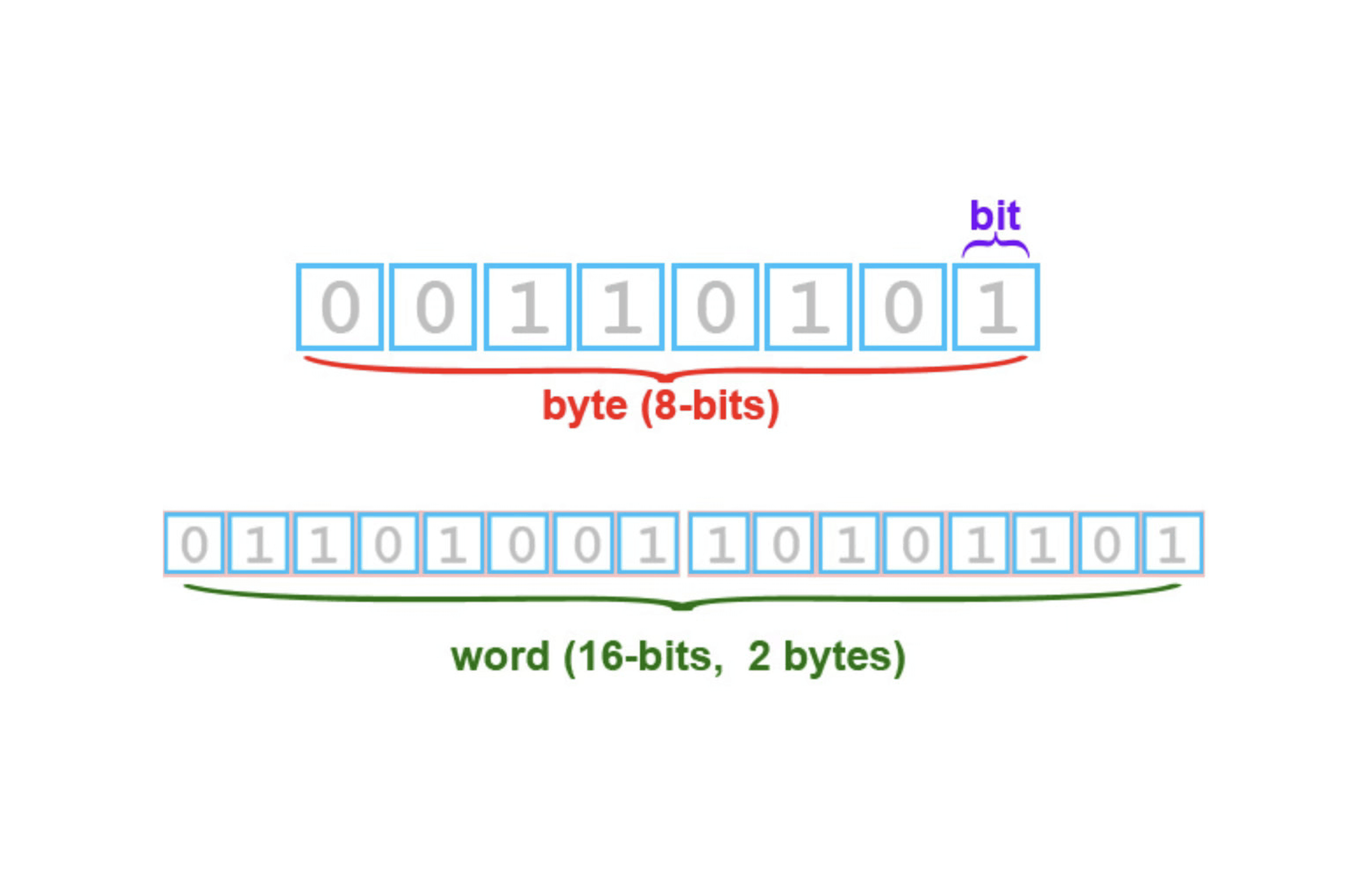 A bit is the smallest unit of digital information. A bit holds one of two possible values: 0 (off) or 1 (on). Everything on a computer, including every Bitcoin transaction ever made is ultimately built from combinations of these two states.