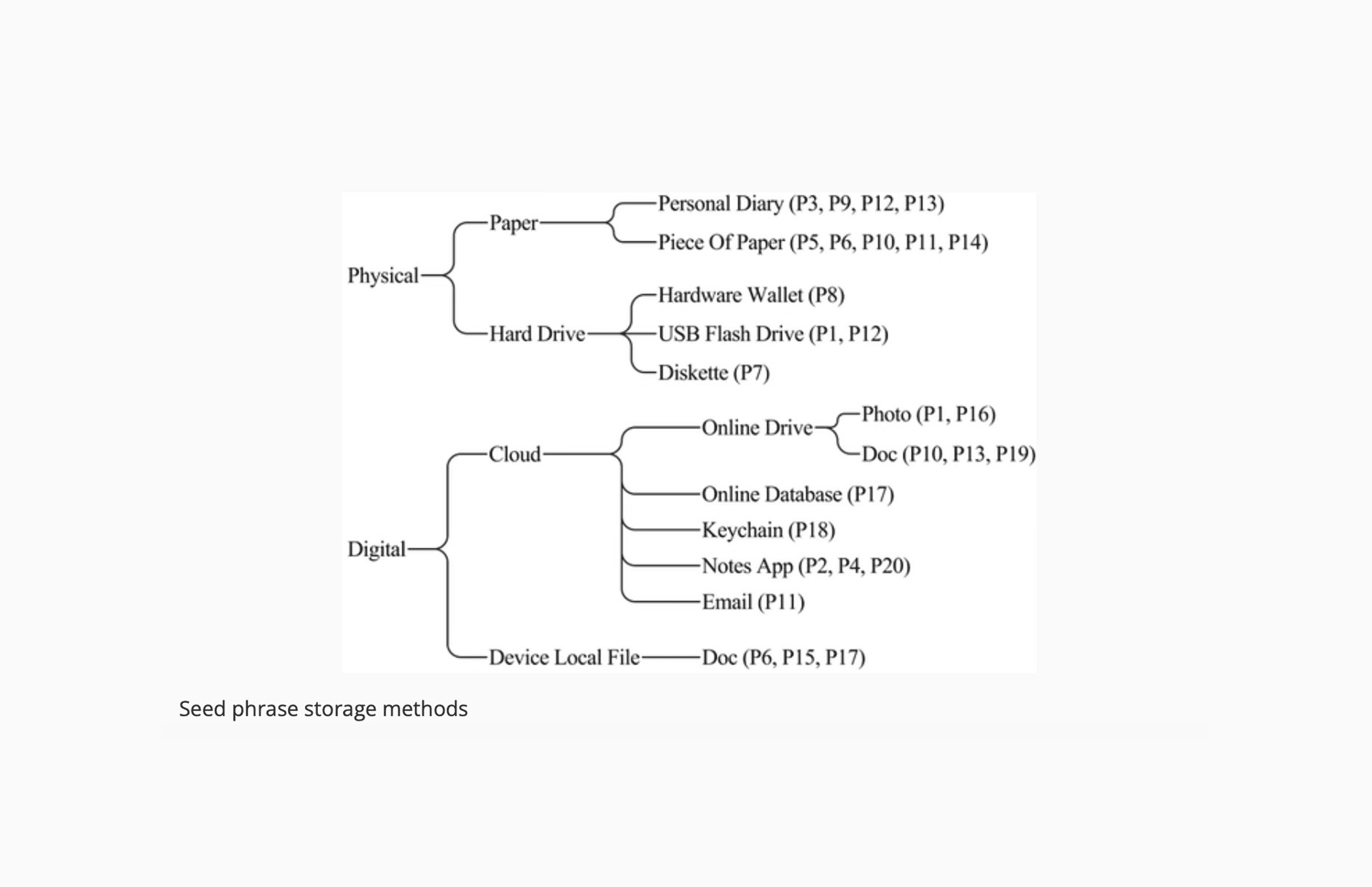 Examples of seed phrase storage methods | Source: Eleshin et al. (2025)