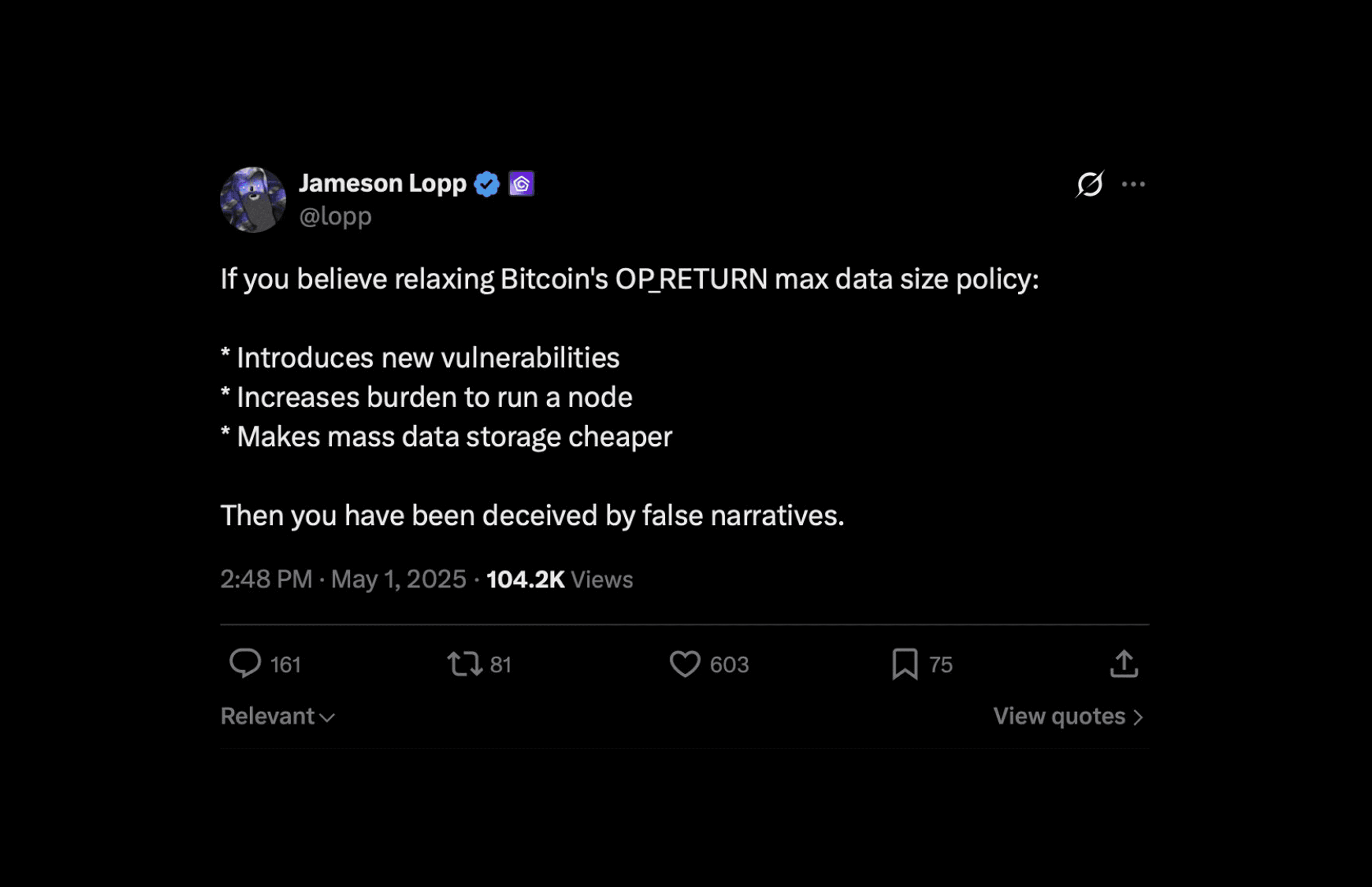Jameson Lopp on OP_RETURN | Source: https://x.com/lopp/status/1917924032487260192