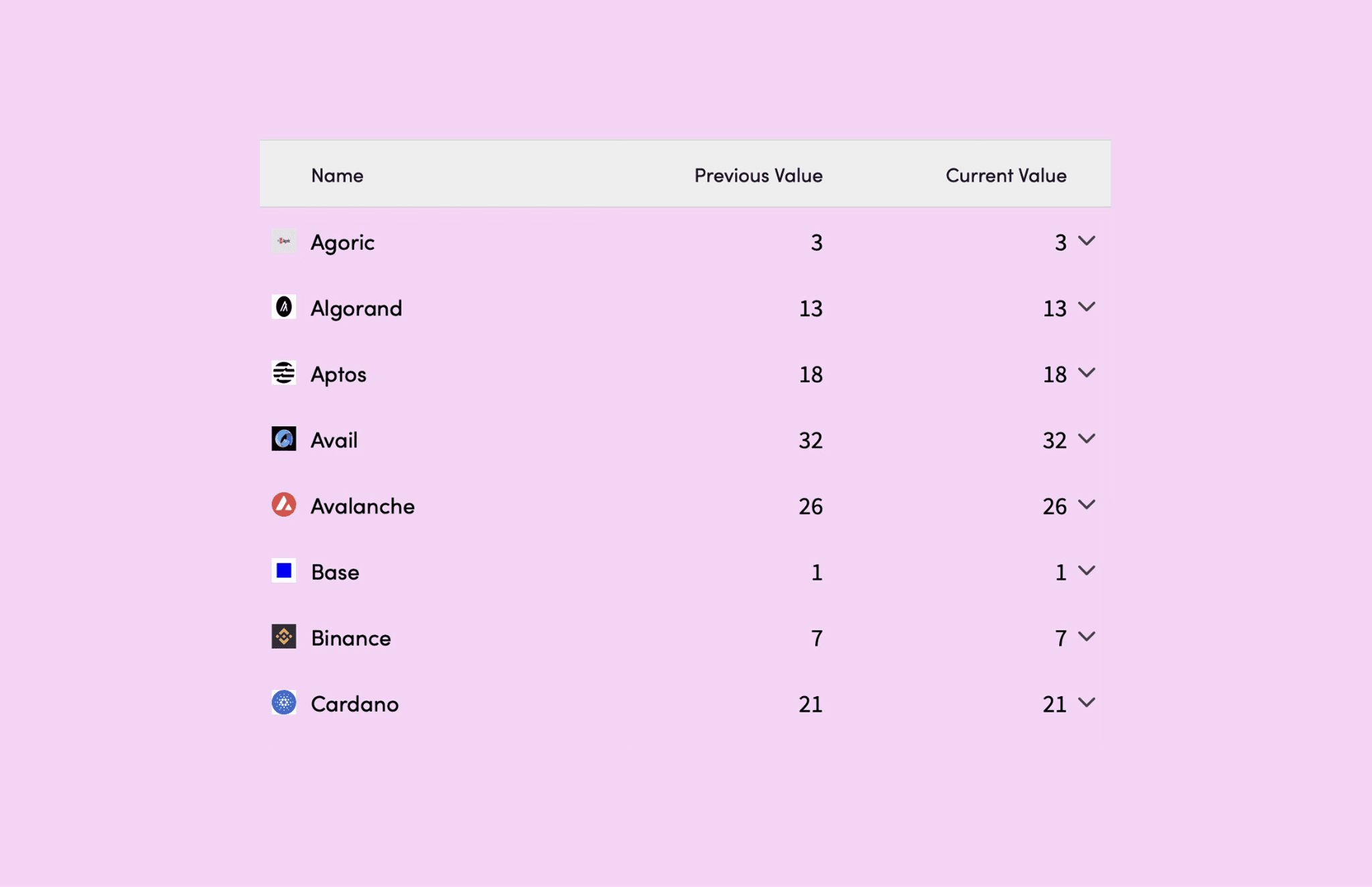 Algorand (≈13): Algorand’s lower score indicates that consensus is more concentrated, with block production handled by a relatively small set of participants. Fewer entities are involved in producing blocks compared with Cardano.