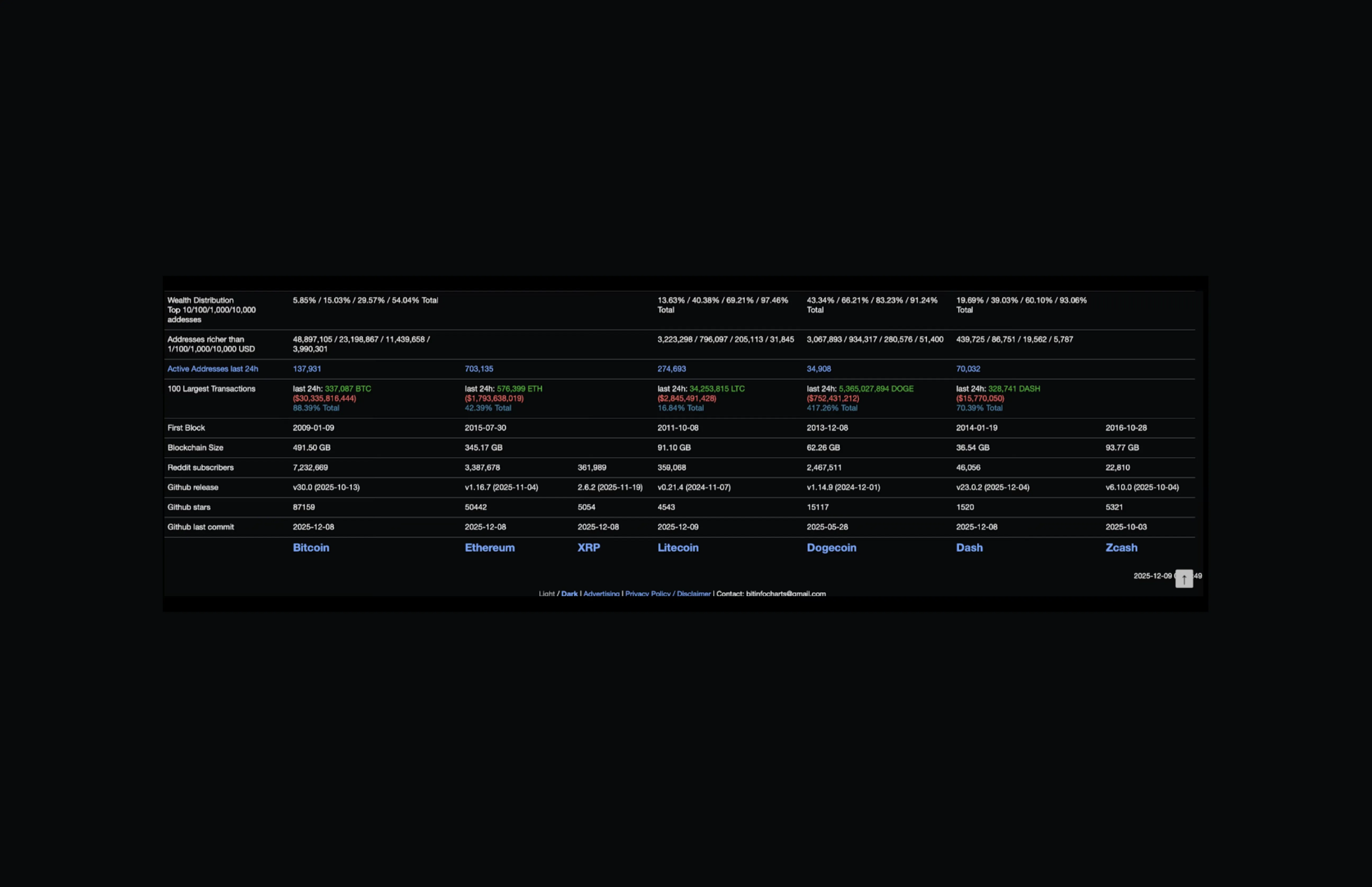 Comparison LTC vs BTC VS Altcoins December 9, 2025
