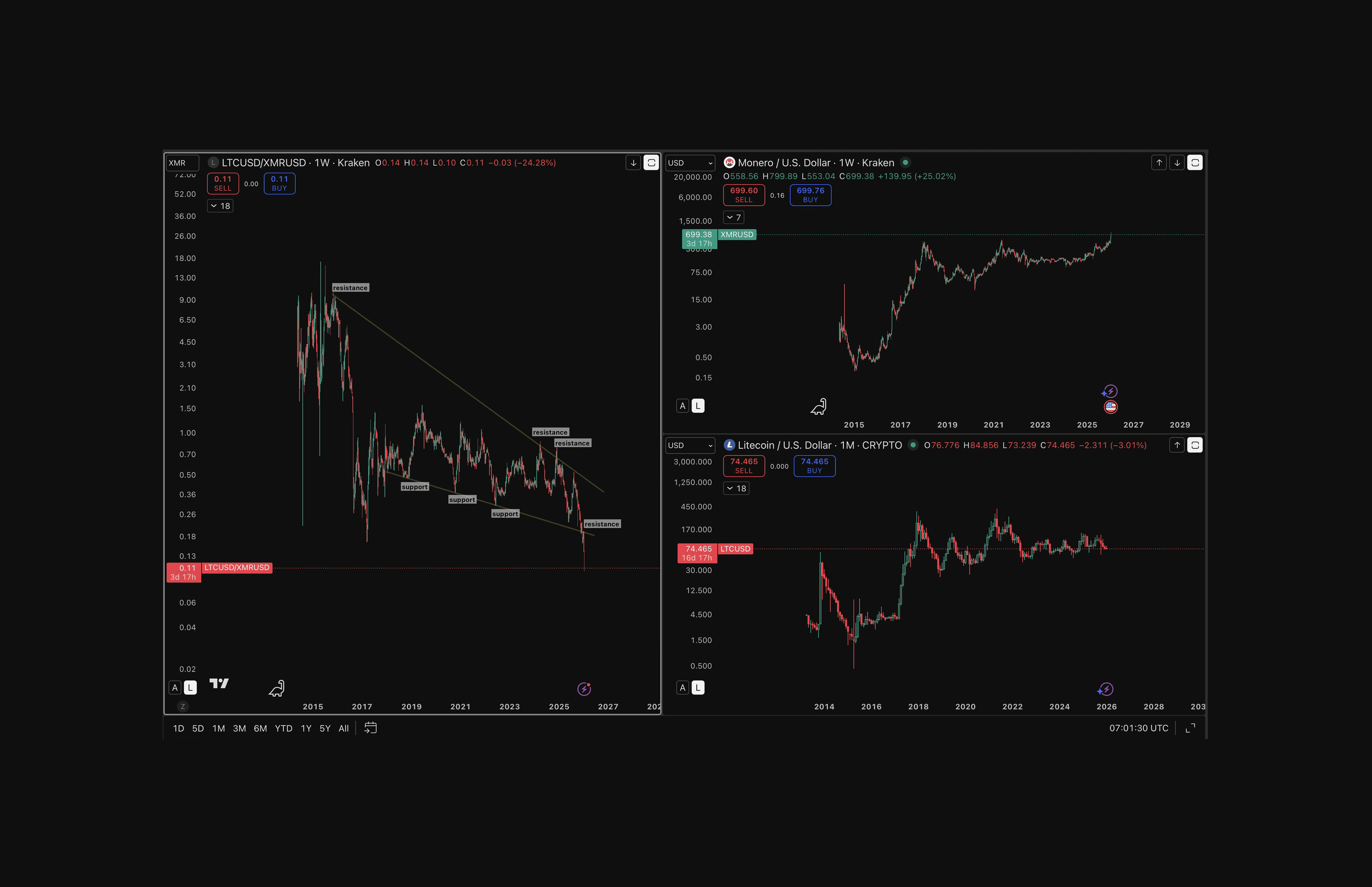 Relative Strength: LTC vs XMR taken January 15, 2026