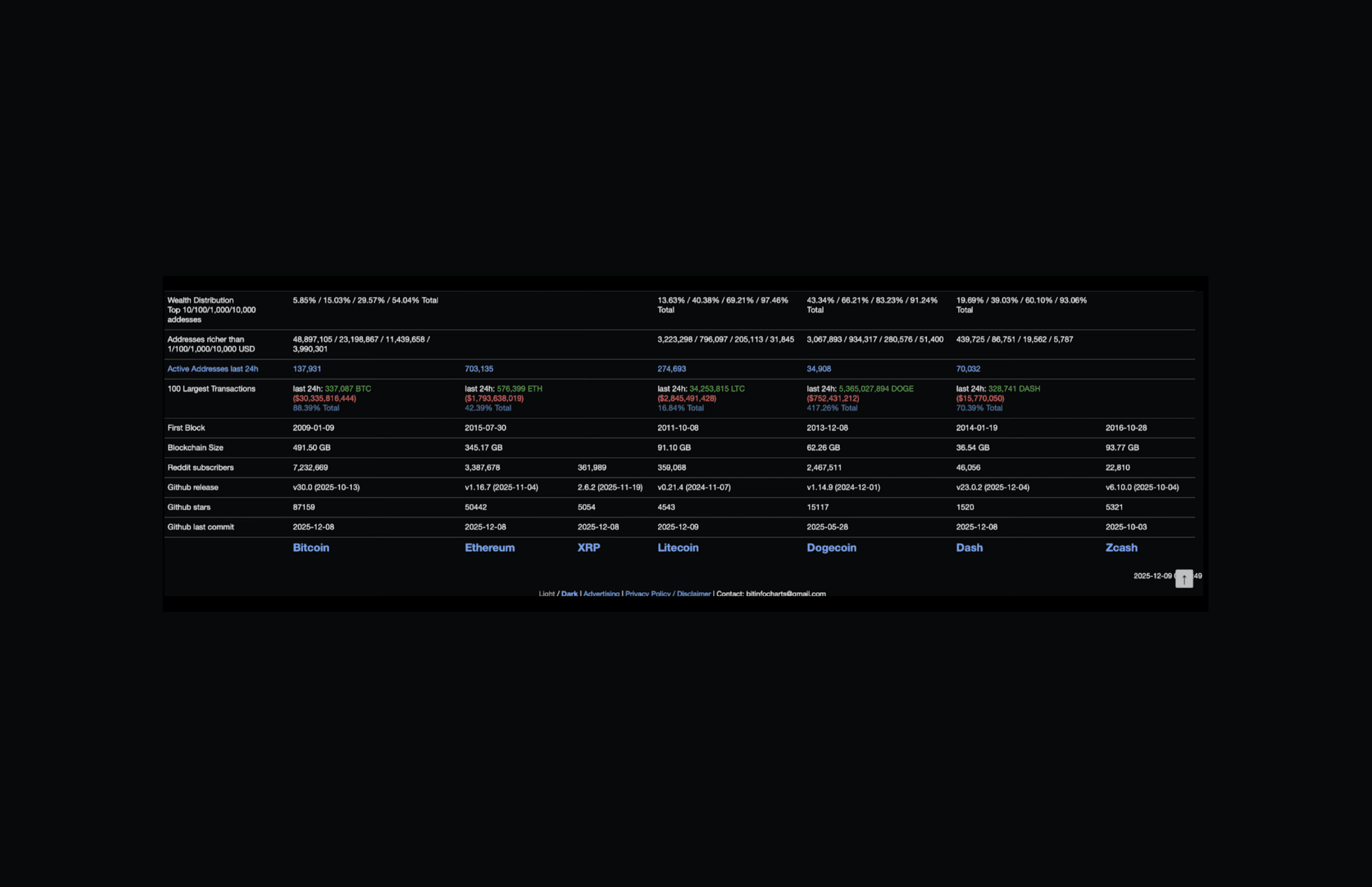 Comparison LTC vs BTC VS Altcoins December 9, 2025