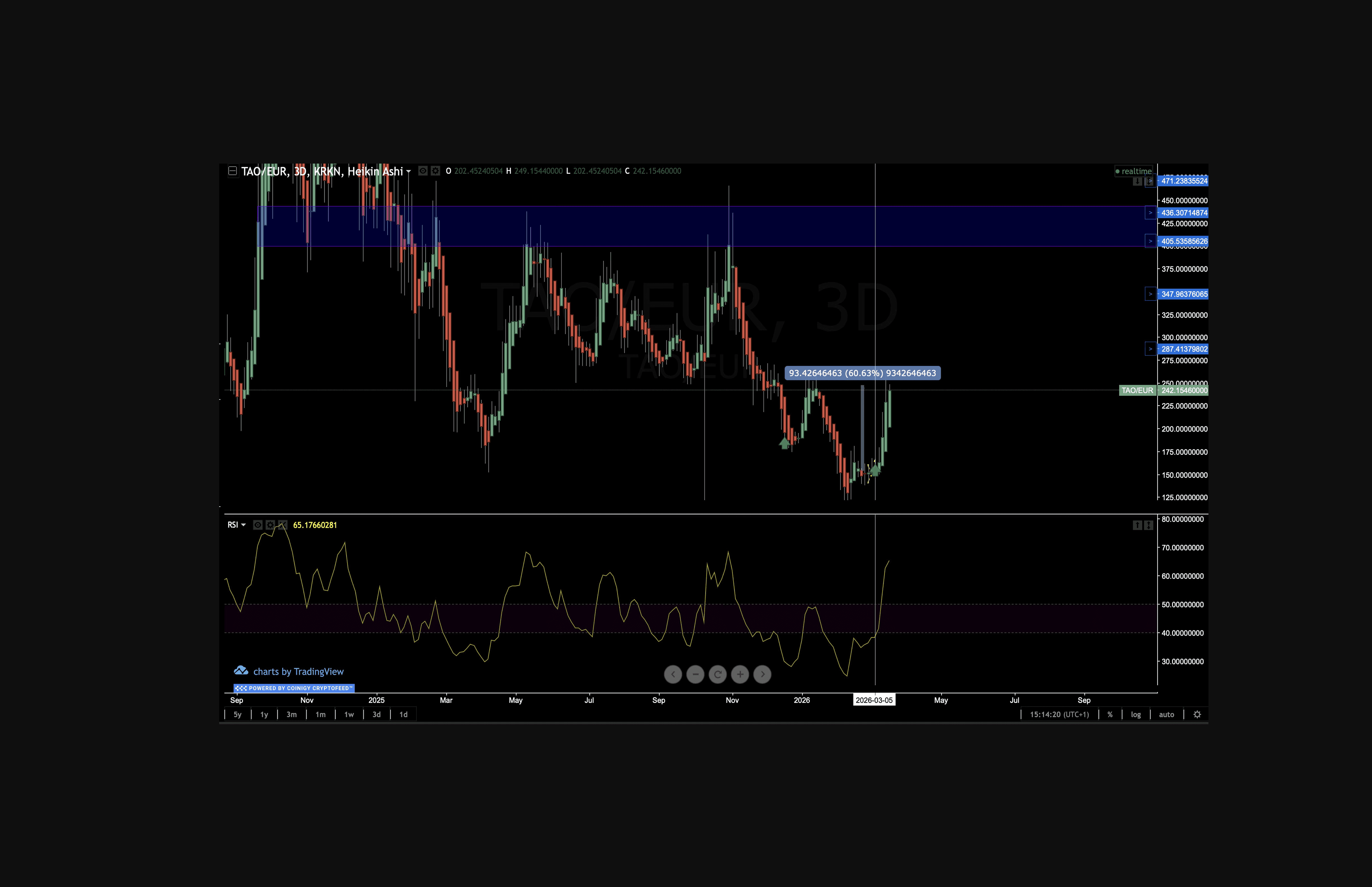 TAO: Up 58% from entry, strong base structure, holding long with further upside expected.