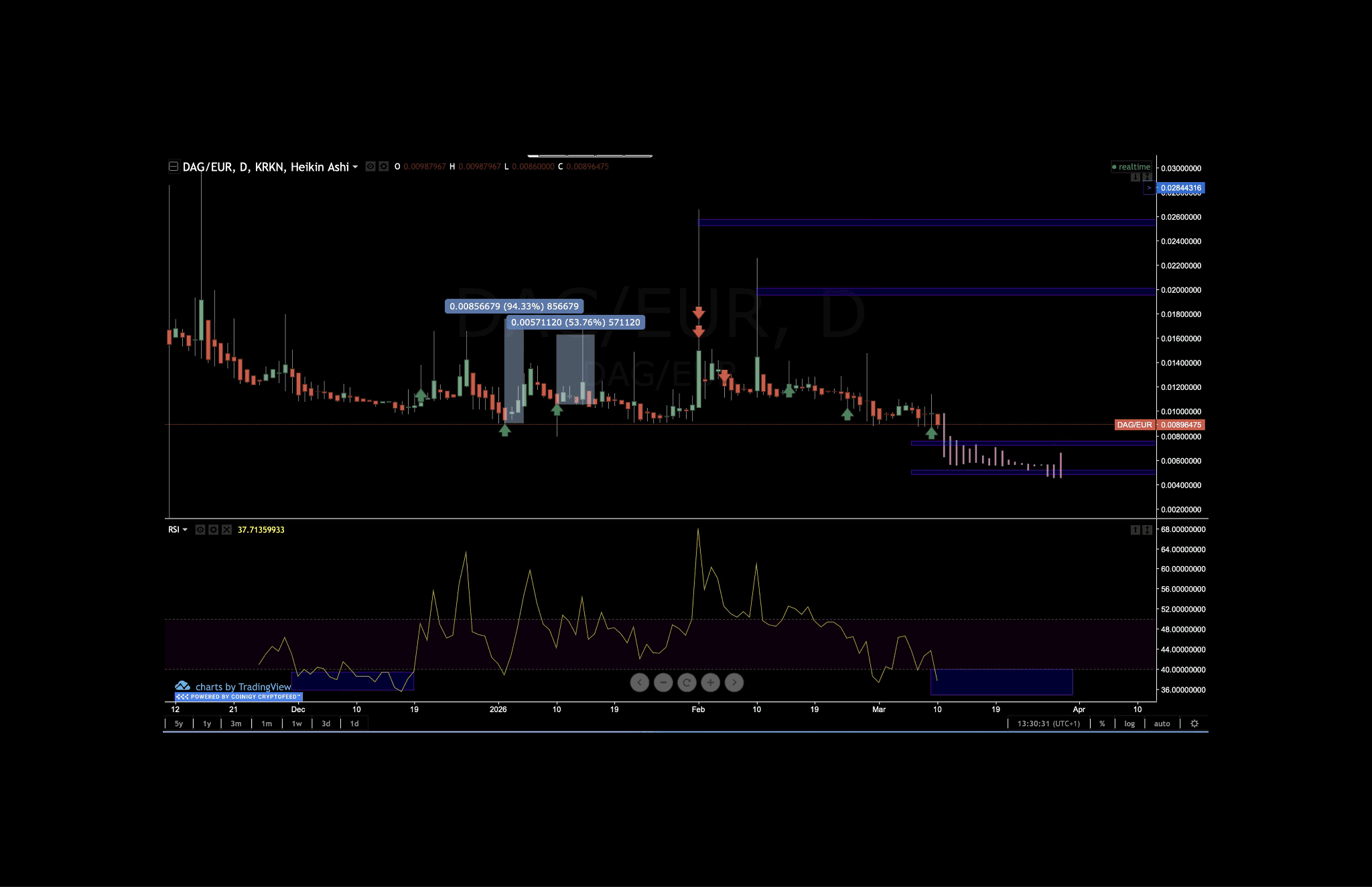 The honest caveat: At this market cap and volume, liquidity is thin. Size accordingly. This is not the same conviction trade as ICP or BONK but DAG seems to be offering these quick spikes in price.