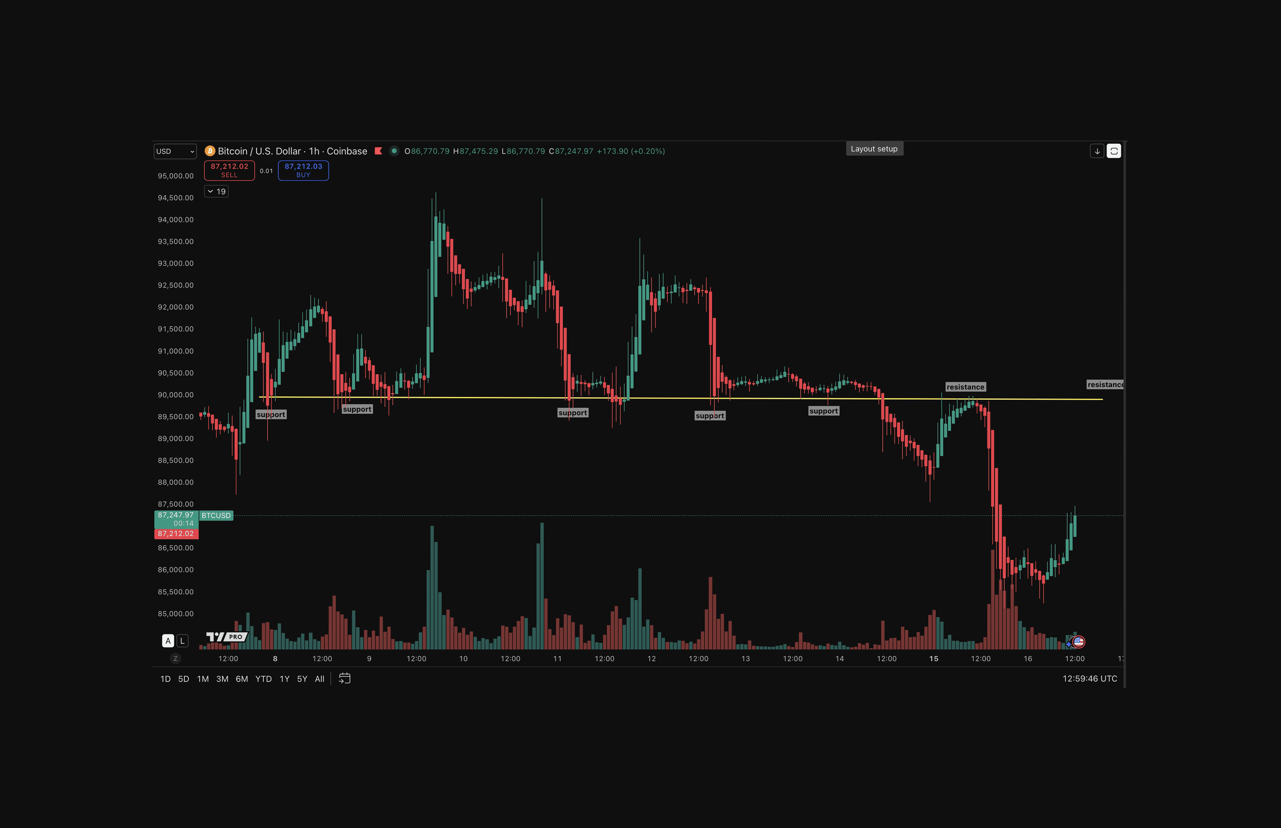 Amount of trading that occurred at the level: In the 1hr BTC chart above, the yellow line acted as support multiple times because price repeatedly paused and closed there with visible volume. Each interaction added more positions to that area, increasing the likelihood of future reactions.
